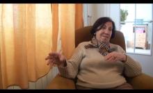 La entrevistada estuvo de externa y de interna en el colegio, realizando estudios de secretariado junto a su hermana. Esta hermana, tras formarse como enfermera junto al médico local Hermán Pascual, abrió una gestaría en la que la entrevistada trabajó hasta que se trasladó a París, donde permaneció doce años. Finalmente regresó a Pamplona, trabajando en el hospital durante otros veinticinco.